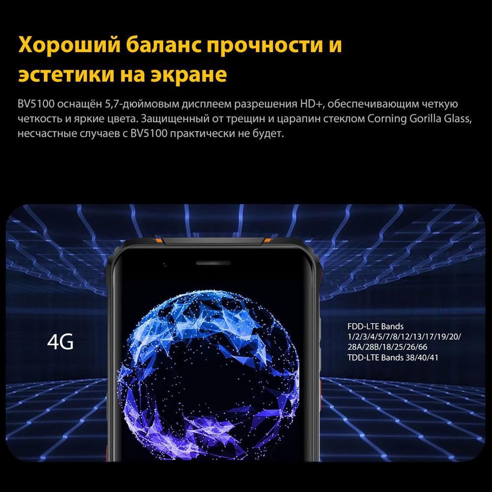 Blackview BV5100 полностью русифицирован, готов к использованию в GSM, 3G и 4G сетях на территории РФ.