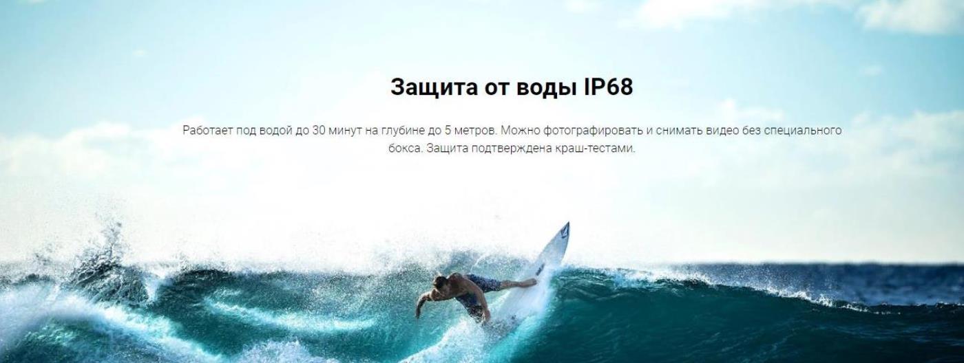 - максимальная степень защиты IP-68 (полностью пыленепроницаемый прибор, выдерживающий длительное погружение в воду на глубину более 2м, устойчивость к падениям с высоты более 5м, внешнему давлению 400кг, перепадам температуры, а также воздействию химически активных веществ);
