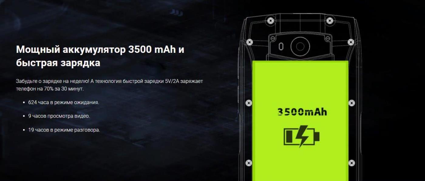 - супер мощный аккумулятор емкостью 3500 мАч (500 часов в режиме ожидания);