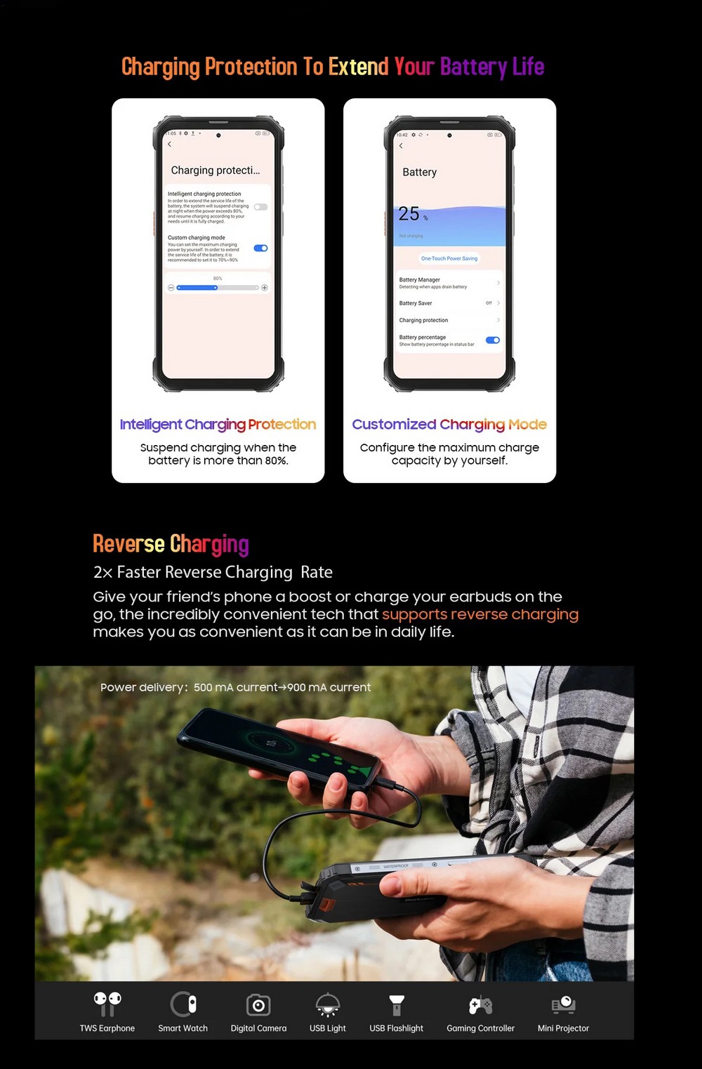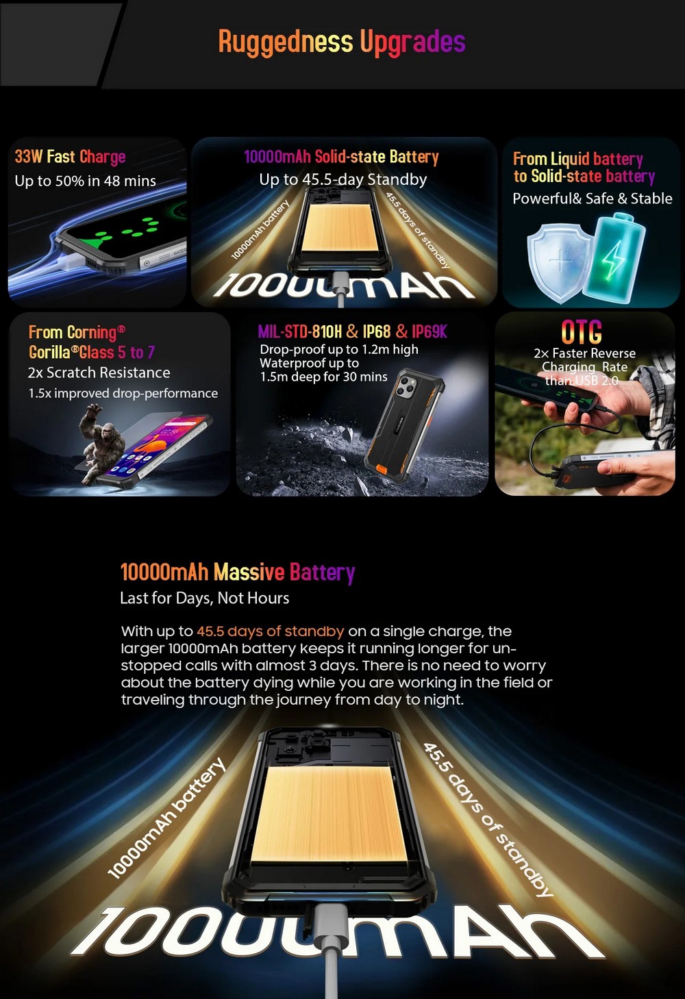 | Дополнительно | Мощный аккумулятор |
