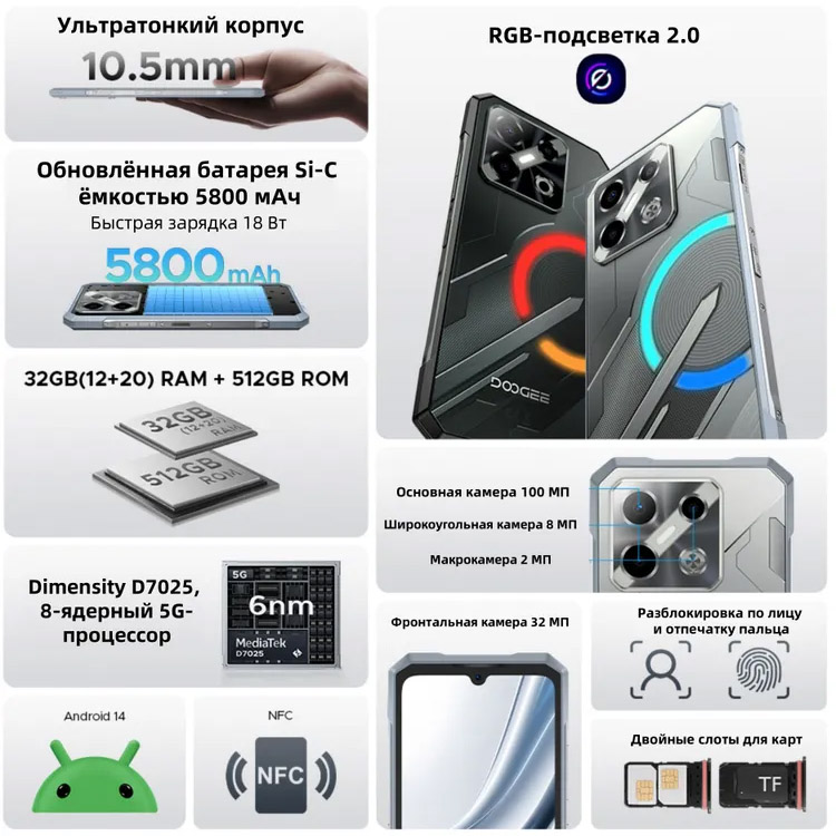DOOGEE Blade GT Pro – Тонкий стильный защищенный смартфон с RGB-подсветкой.