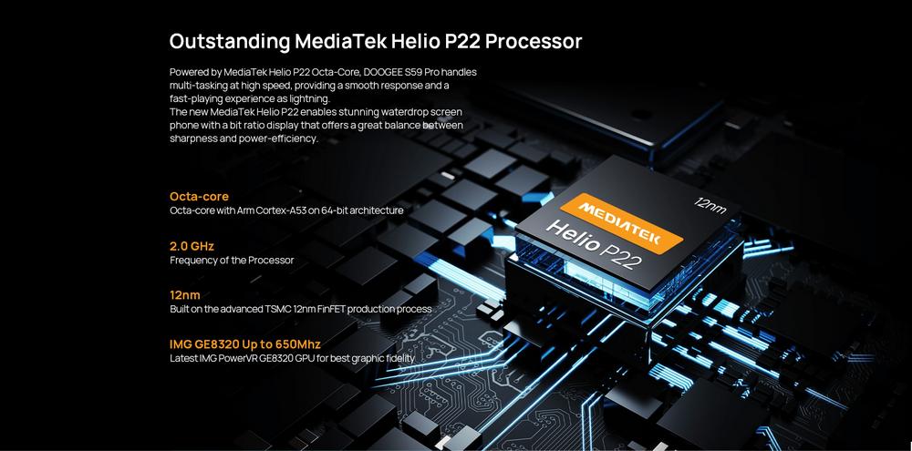 - MediaTek Helio P22;