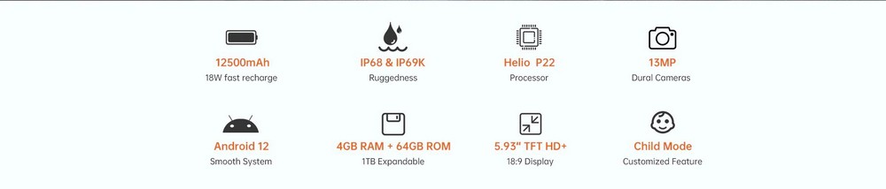 Защищённый смартфон IP68/IP69K, 4GB RAM, 64GB ROM, мощный аккумулятор 12500 мАч, 5.93" 1600х720, NFC