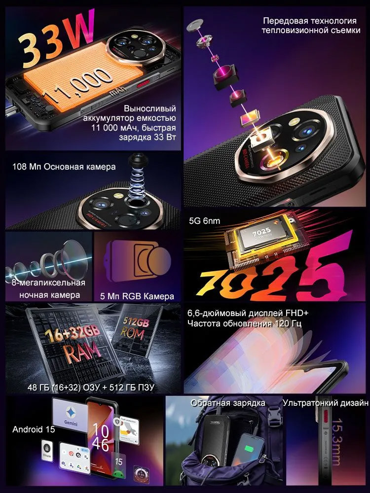 Oukitel WP55 Ultra – прочный 5G смартфон со встроенным тепловизором до 550°C, АКБ 11000 мАч, 108 МП камерой, ультратонким дизайном
