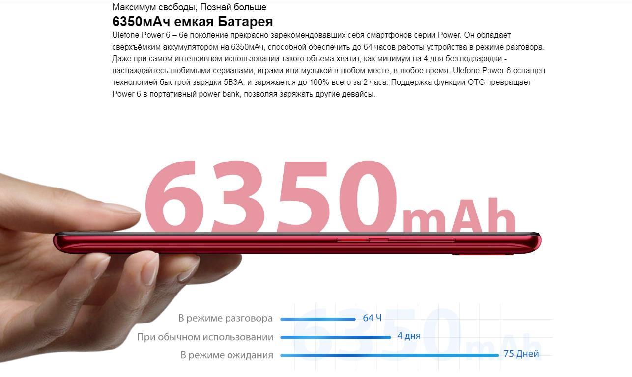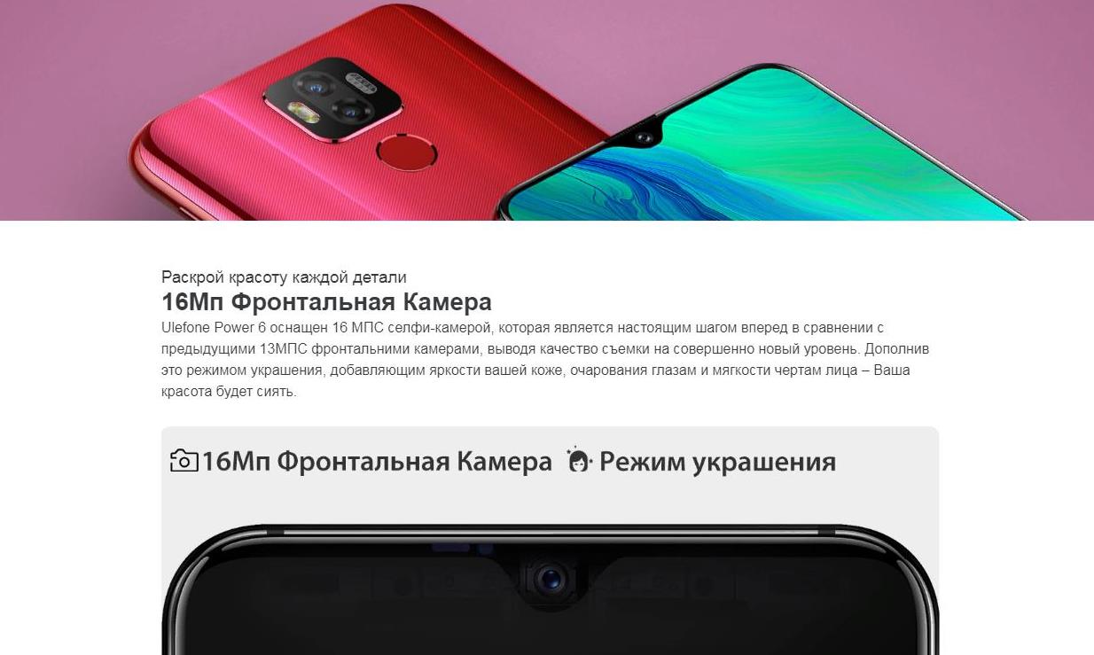Ключевые характеристики смартфона Ulefone Power 6: